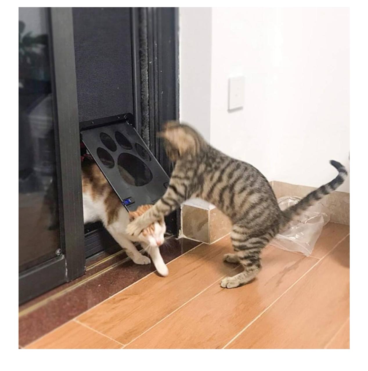 Pet Door Screen with Paw Print Design, Black Mesh Ventilation Panel, Dog Cat Flap